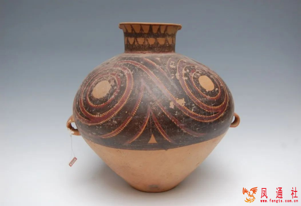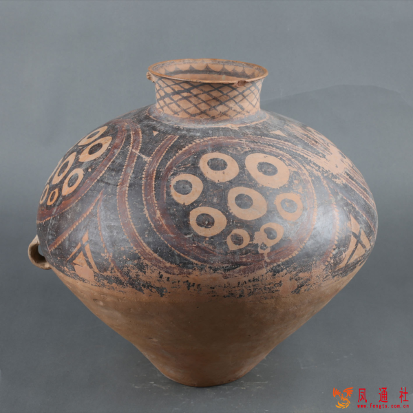 四大圆圈纹是马厂类型又一独具特色的纹饰,采用黑、红两种色彩绘图,是在继承半山锯齿漩涡纹基础上演化而来,外圆寓天,内方代表土地,流露出古人“天圆地方”的思想。