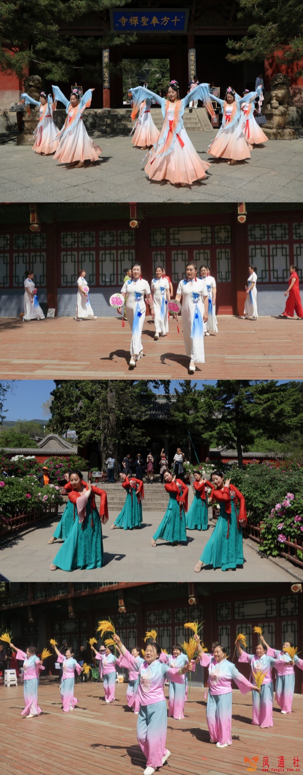在奉圣寺、浮屠院内,古建筑与牡丹花海交相辉映。游客可漫步禅院,在唐风古韵中赏牡丹芳姿,于“唯有牡丹真国色”的诗意场景中拍摄九宫格照片,参与打卡互动,定格牡丹映衬古建的诗意画面。“赏牡丹 品晋韵”活动中,游客在花丛间寻觅隐藏诗句,录制诵读视频,以诗文与影像共话晋阳文脉。"华裳映国色"主题诗舞,再现盛唐风雅,实现人与景的时空对话。