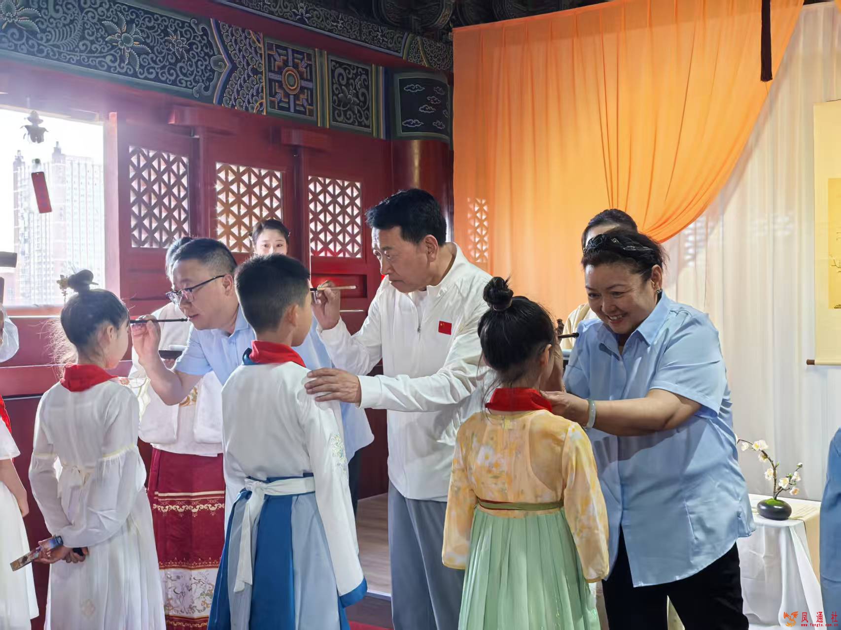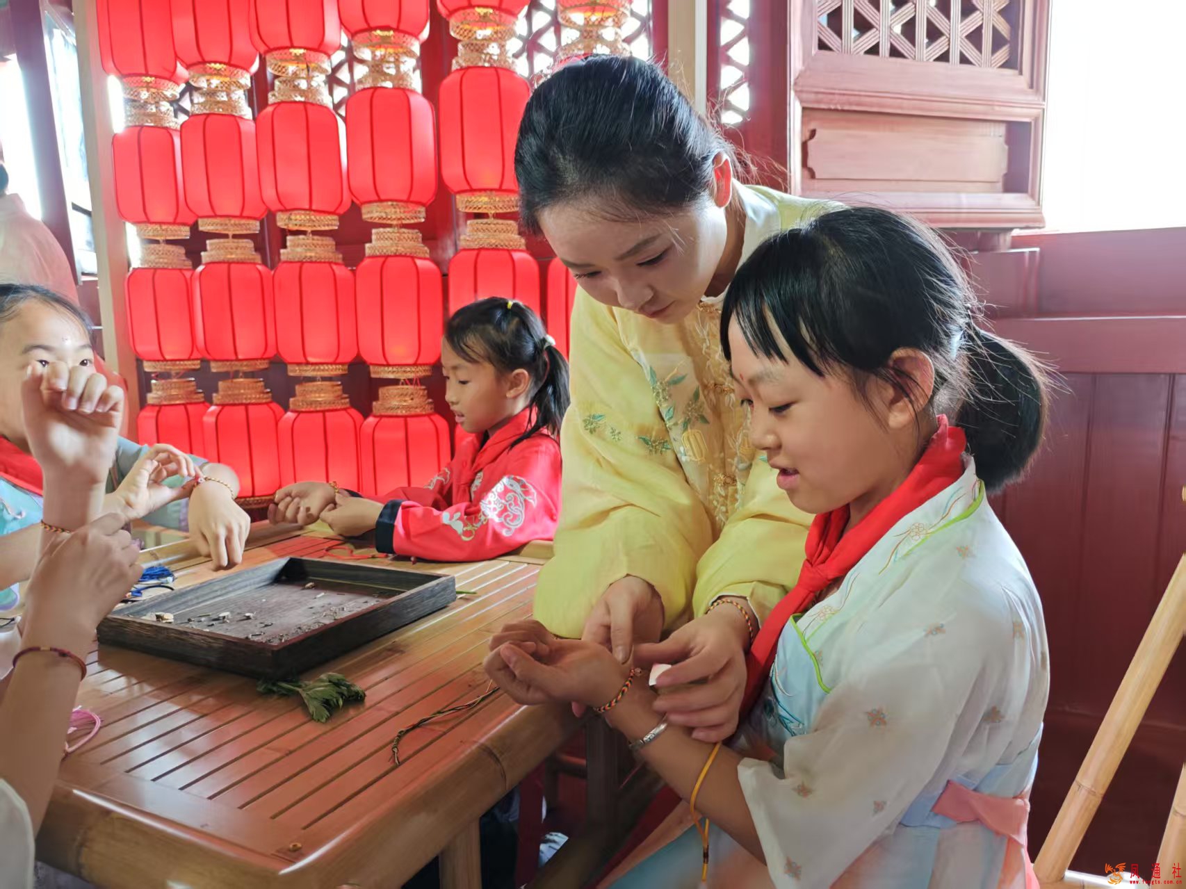 导读:凤通社(王康忠)2025.5.29讯:2025年5月27日下午,拱极门城楼内热闹非凡,一场由太原市文物局主办、国师纪念馆承办的五色祈安康 指尖传非遗端午主题活动在此举行。来自太原市坝陵桥小学30余名师生参与此次活动,共同感受端午节的独特魅力,领略非遗文化的深厚底蕴。 活动在一场悠然雅致的茶艺表演中拉开了序幕。主持人通过故事讲解、习俗演示等方式为同学们讲解历史文物与端午民俗文化,每个知识点都如同一把钥匙,开启了大家对端午文化的认知大门。端午节有哪些习俗的问题刚出,同学们便踊跃举手。一位小朋友声音洪亮地回答: